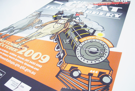 Illustration and design for The Workshops Rail Museum event "The Great Train Robbery". Collateral included a twelve metre exterior banner, A2 posters, brochures, advertisements and life-sized character standees. Check out the characters in the illustration section of the 57 portfolio.
