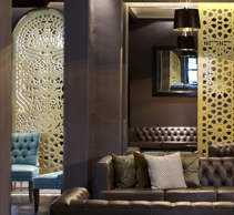 Forming the centre piece for Phorm Interior's design for the Port Office Hotel refurbishment, these intricate screens were designed with a "Gentleman's Polo Club" theme.The final concept hinted at Polo shirt logos, with Polo mallets, alligators, laurel wreaths and many other visual puns forming the elemental basis for the design. Seahorses were used instead of land horses, as a reference to the nautical nature of the Port Office.